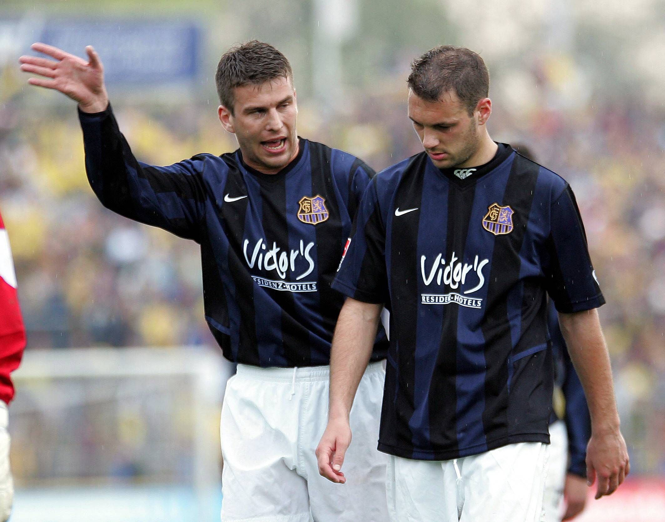 Ivan Dudic (li.) und Alexis Genet (beide Saarbrücken) im Gespräch Fußball 2. BL Herren Saison 2005 2006, 1. FC Saarbrücken Gruppe Dresden