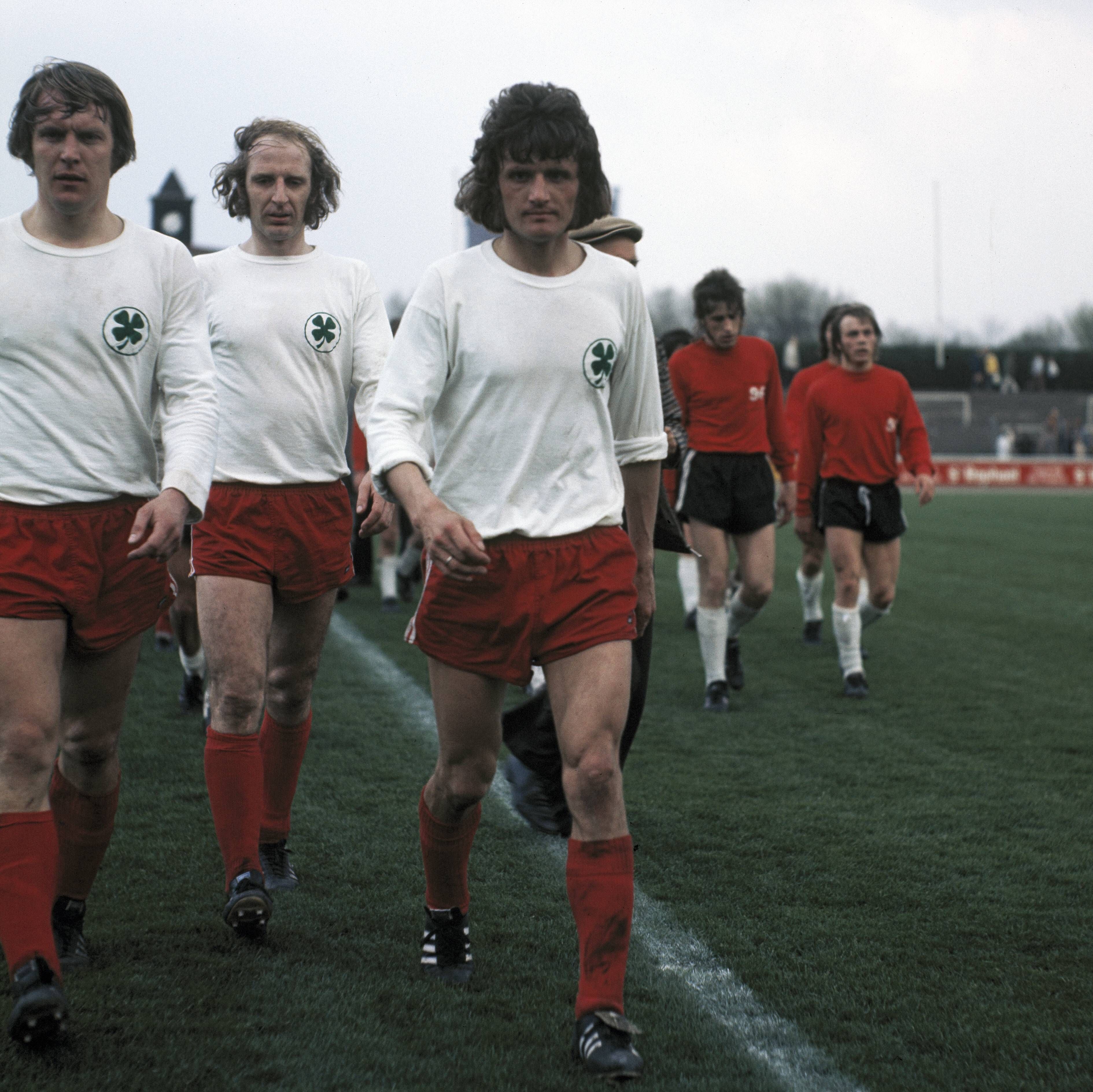 Abgang der Oberhausener Spieler v.l.n.r. Friedhelm Dick, Lothar Kobluhn und Gerd Woermer, Fussball, Bundesliga, 1972 1973, Rot-Weiss Oberhausen gegen Hannover 96 1:0 Fussball, Bundesliga, 1972 1973...