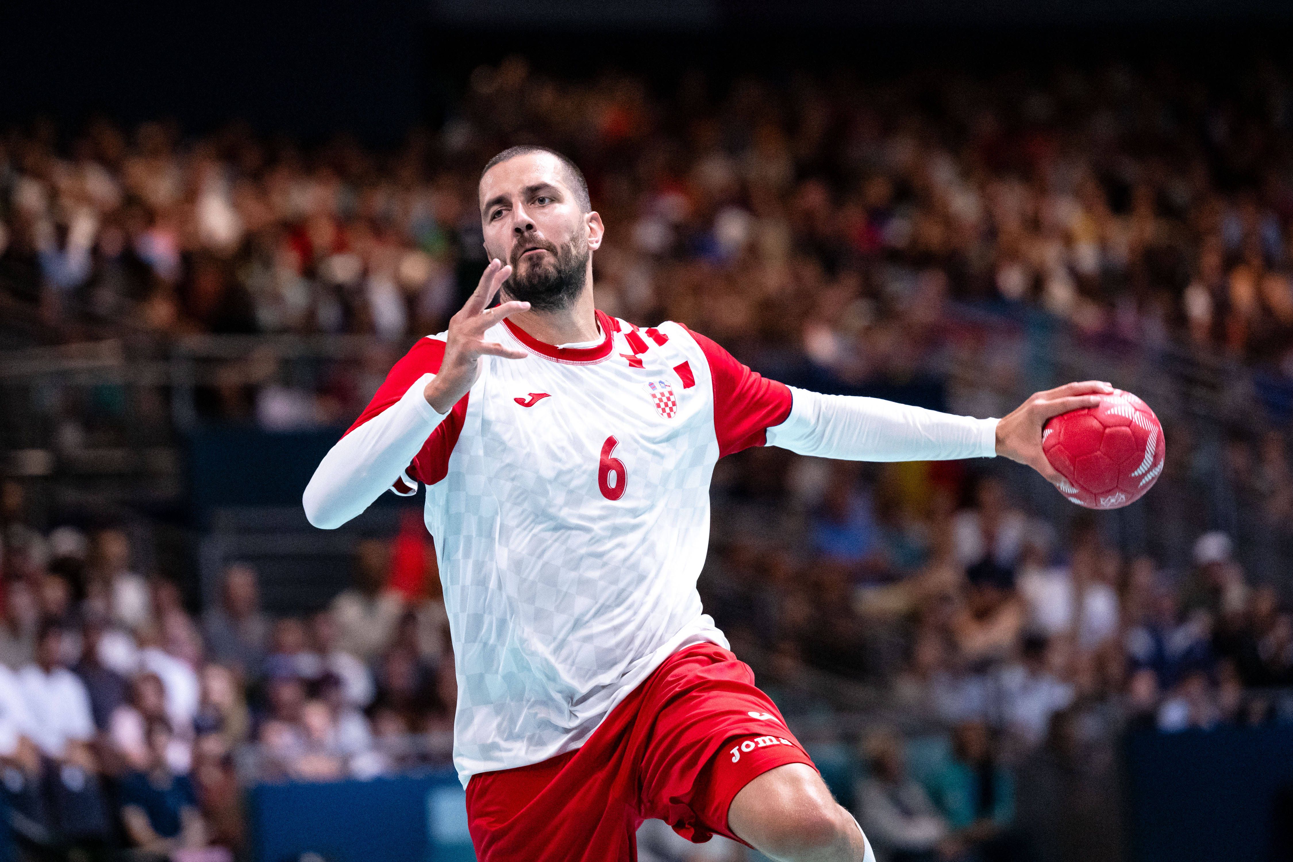 SOSTARIC Mario (Kroatien, 06) am Ball, FRA, Olympische Spiele Paris 2024, Handball, Herren, Deutschland (GER) vs Kroatien (CRO), Gruppenphase, 3. Spieltag, Gruppe A, 31.07.2024 FRA, Olympische Spie...