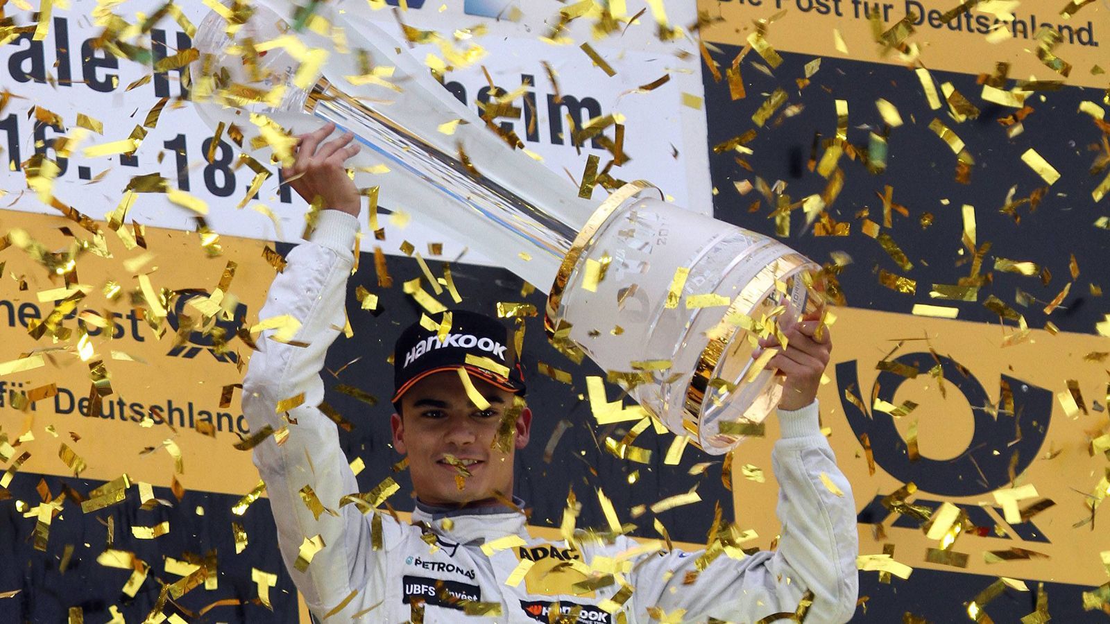 2021 sprach am Norisring fast jeder über einen Zweikampf um den Titel: Liam Lawson gegen Sheldon van der Linde. Maximilian Götz wurden Außenseiterchancen zugeschrieben. Doch mit etwas Rennglück - und weil sich die beiden an der Spitze gegenseitig das Leben schwer machten - gelang dem HRT-Piloten die Sensation: Götz gewann doppelt in Nürnberg und setzte sich die Meisterkrone auf.imago images/Pakusch
