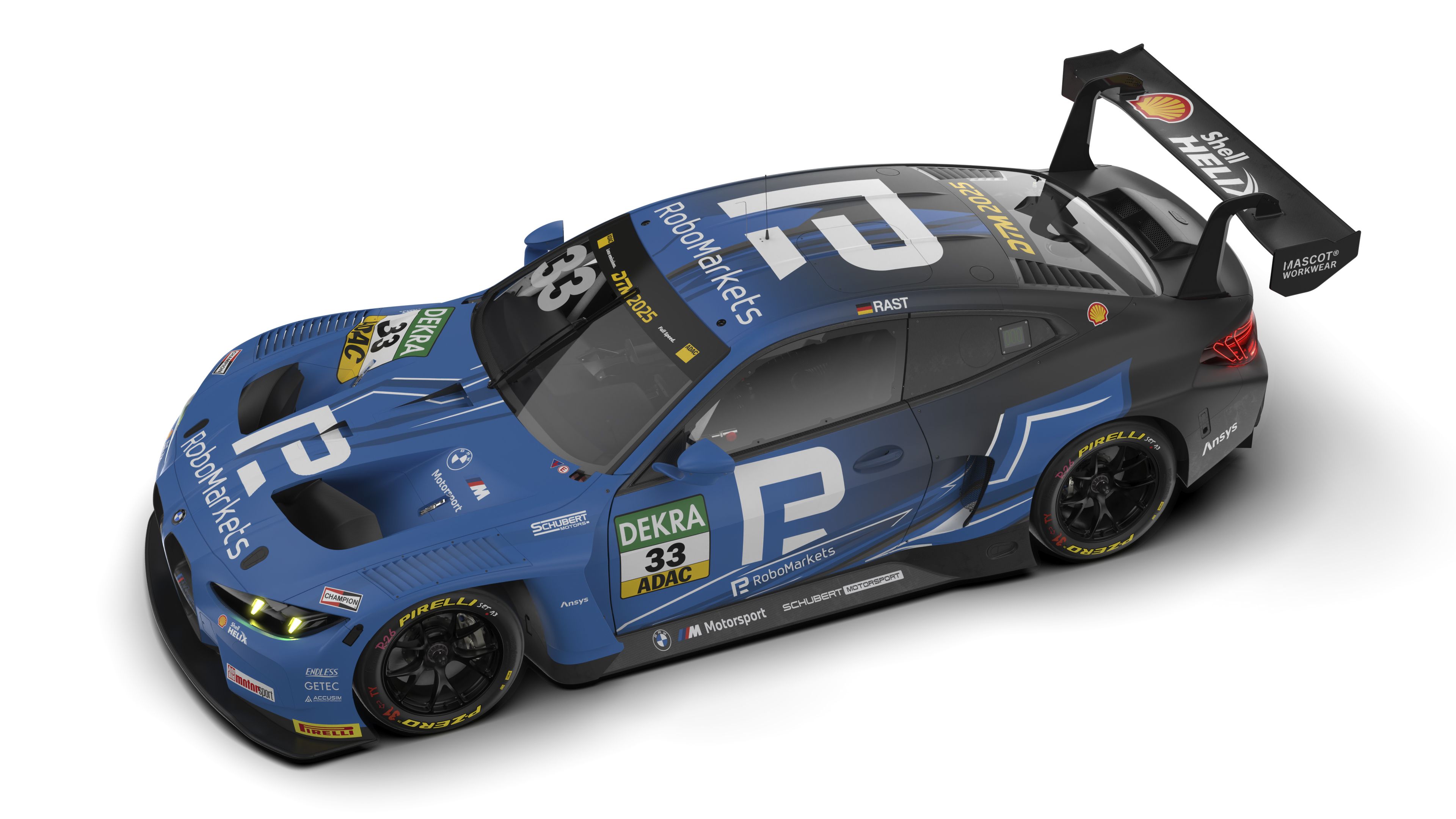Nein, ihr müsst euch nicht die Augen reiben: Der BMW M4 GT3 von Rene Rast ist wieder in blauen Tönen unterwegs, die bis ins schwarz abdunkeln - das Design ähnelt fast gänzlich dem aus 2024.Schubert Motorsport