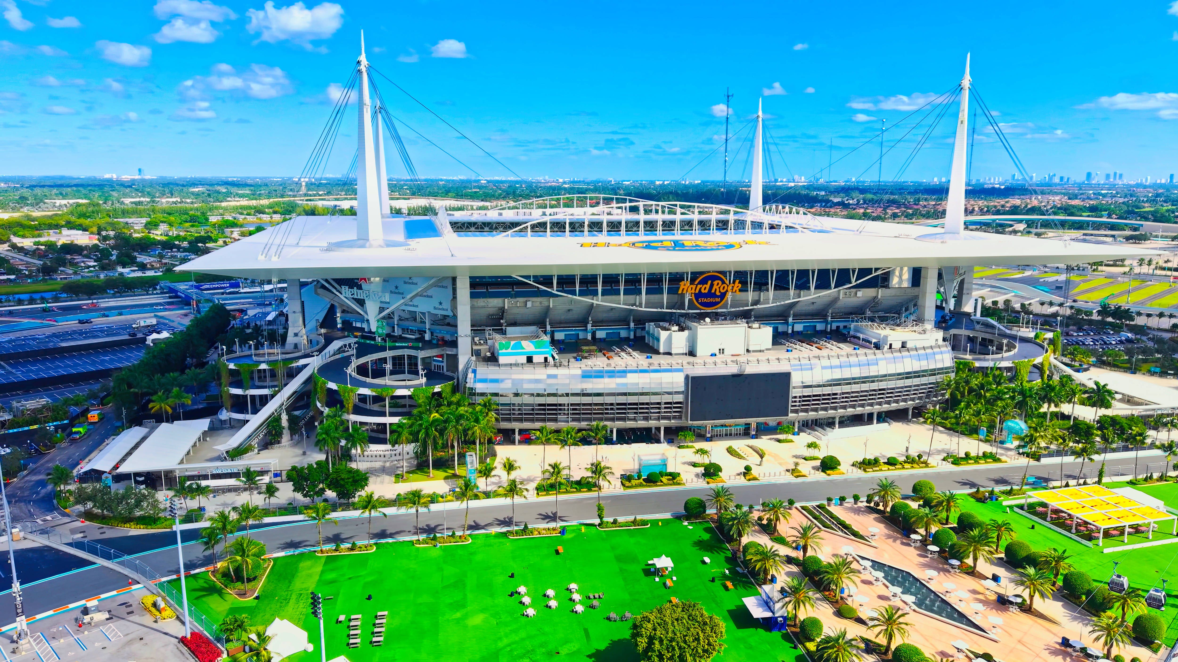 Luftaufnahme des Hard Rock Stadium Miami - Heimat der Miami Dolphins - MIAMI, FLORIDA - 3. NOVEMBER 2024 Luftaufnahme des Hard Rock Stadium Miami - Heimat der Miami Dolphins - MIAMI, FLORIDA - 3. N...